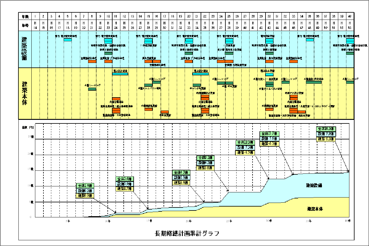 長期修繕計画に基づき先を見通した計画的修繕・更新工事を実施することにより、建物を有効に利活用することができ、個人の生活設計・企業の経営計画に貢献することが出来ます。